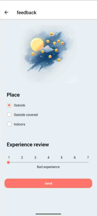 Receive contextual alerts based on time (1 PM, 3 PM, and 9 PM) or location. These reminders ask for quick feedback on your urban and thermal experience—without disrupting your visit.
